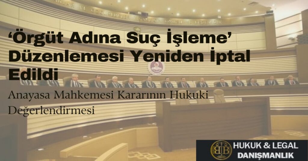 Anayasa Mahkemesi, 5/11/2024 tarihli ve E.2024/81, K.2024/189 sayılı kararıyla, Türk Ceza Kanunu’nda (TCK) yer alan “örgüt adına suç işleme” düzenlemesini ikinci kez iptal etti. Türk Ceza Kanunu’nun 220. ve 314. maddelerine ilişkin bu düzenleme daha önce de Anayasa Mahkemesi tarafından 26 Ekim 2023 tarihli ve E.2023/132, K.2023/183 sayılı kararıyla iptal edilmişti. Ancak bu iptal kararının ardından düzenleme, 8. Yargı Paketi kapsamında tekrar yasalaştırılarak yürürlüğe girmişti.